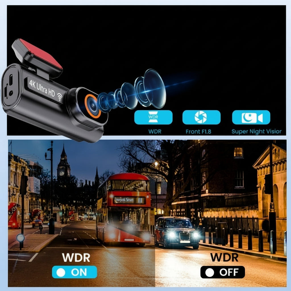 Nie musisz zgadywać. AuraGuard 4K widzi wszystko – z widokiem 170°, który obejmuje trzy pasy ruchu, i nagrywa w ultraostrej rozdzielczości 4K. Nawet w nocy – dzięki Super Night Vision + technologii WDR, która rozjaśnia ciemne zakamarki i przytłumia odbłyski, by tablice rejestracyjne i znaki były zawsze czytelne.